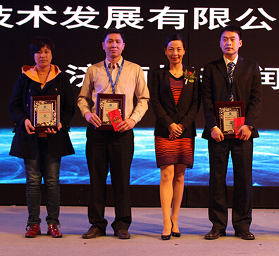 柯尼卡美能達市場部部長凌蕓女士(右二)為積極推進環保的優秀經銷商頒獎