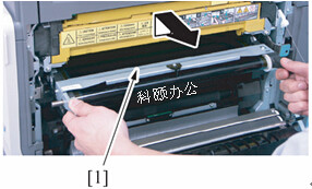 3. 握住兩端并提起,將圖像轉印帶單元[1] 取出